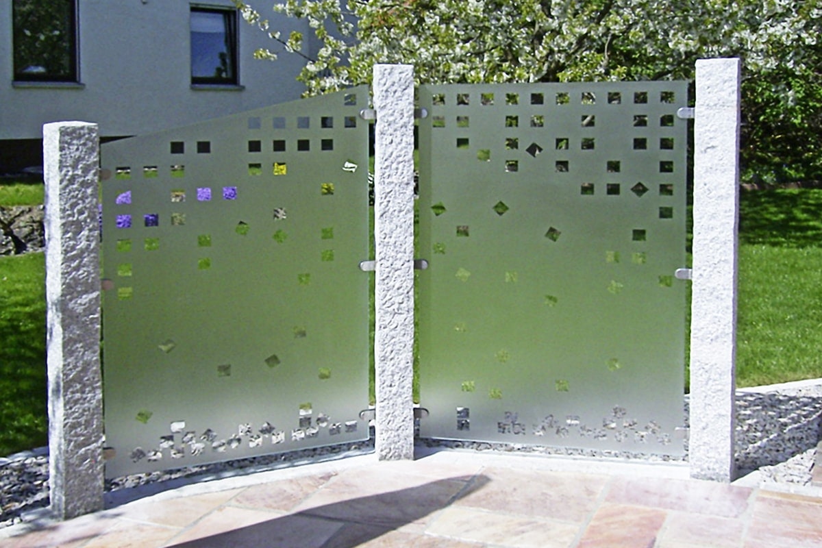 Mit Hilfe der Sandstrahltechnik haben wir die Möglichkeit, individuelle Motive auf Glas zu bringen. So kann z. B. aus einer ganz „normalen klaren“ Ganzglastüre ein kleines Kunstwerk entstehen.